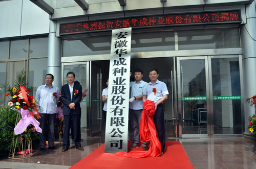 2016年5月5日,在麥浪飄香的美好季節(jié)里,由宿州市種子公司整體改制為安徽華成種業(yè)股份有限公司。上午09:18,在市財(cái)政局副局長(zhǎng)潘相明、市農(nóng)委副主任趙曉春、市國(guó)資辦主任權(quán)偉,生產(chǎn)合作單位代表以及公司全體員工的共同